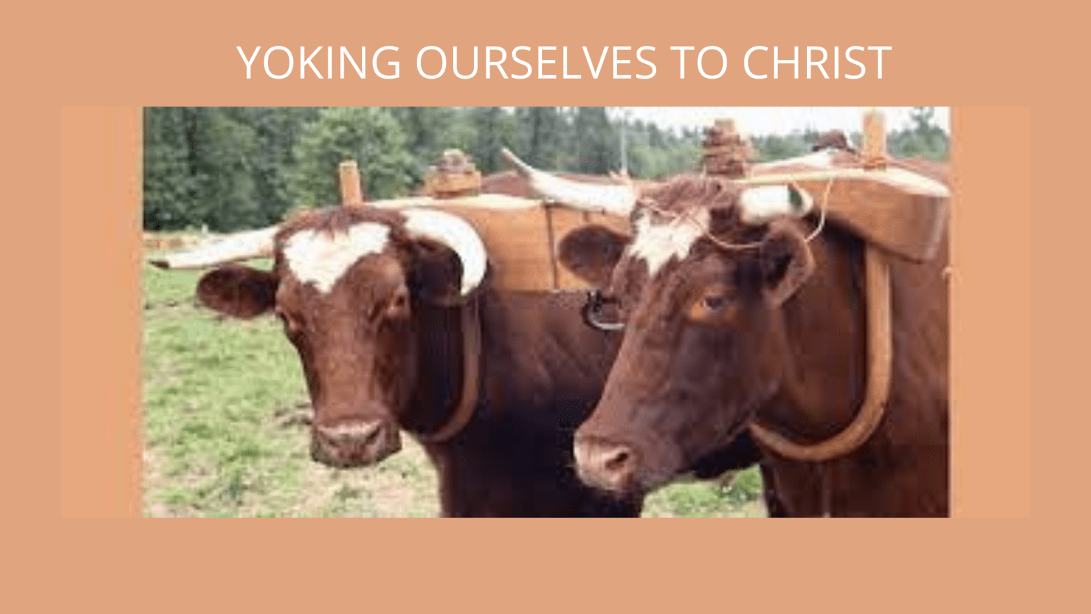 A yoke is beam of wood fitted to 2 ox’s shoulders that maximize the pulling force, but also offer the least pain and most comfort to the ox. To function properly they are fitted for the particular ox. And when yoked together they can accomplish so much more than they can alone.